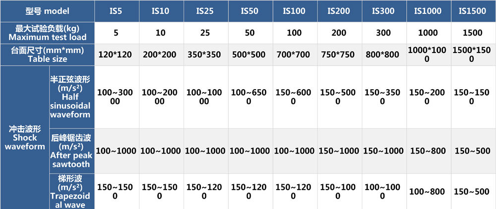 示例:試件質量30kg,尺寸為400×400mm,要滿足100g,11ms的半正弦試驗指標。則根據公式半正弦波:△v=(π/2)AD×10ˉ³=2×1000(m/s²)×11(ms)÷3.14÷1000≈7<12(AIS400最大加載狀態下的速度變化量),故AIS400沖擊臺可以滿足此次試驗要求。
